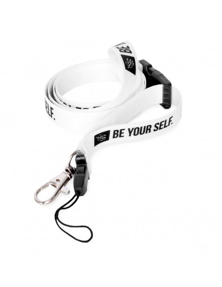 Drukowana smycz tkaninowa z logo marki oraz hasłem BE YOURSELF.