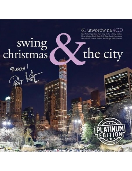 Swing Christmas & The City” to kolejna odsłona platynowej serii, która zawiera starannie dobrane utwory największych wykonawców gatunku swing. Lata rozkwitu jazzu i swingu to niewątpliwie piękny okres. Obdarzony niesamowitym klimatem, którego można doświadczyć słuchając tego świątecznego albumu. Zasiadanie przy wspólnym stole jeszcze nigdy nie było tak wyjątkowe. Paul Anka, Louis Armstrong, Bing Crosby i wielu innych sprawią, że rodzinne chwile nabiorą więcej barw, a potrawy nowych smaków.