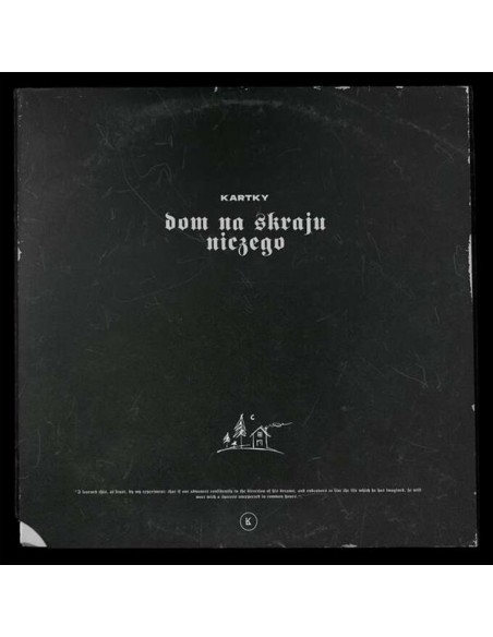 Kartky prezentuje "Dom na skraju niczego". Płyta jest następczynią świetnie przyjętego "Black Magiic", którym raper na dobre zaznaczył swoją pozycję na scenie. Tajemnicze, nieoczywiste teksty i głębokie brzmienie stały się już wizytówką Kartky'ego i nie inaczej jest w tym przypadku. "dom na skraju niczego" to kolejna porcja przepełnionych emocjami utworów, które składają się na zapadającą w pamięć, spójną całość.