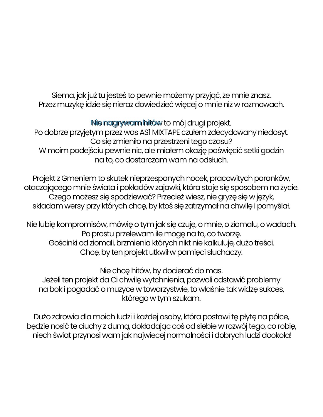 Starałem się by ten projekt był dopieszczony bardziej od poprzedniego, nawet nie wiecie ile uśmiechu mam widząc ile osób stoi za tą muzyką, po całym kraju ludzie w moim poprzednim merchu. Robię co mogę by zrobić to jak najlepiej.