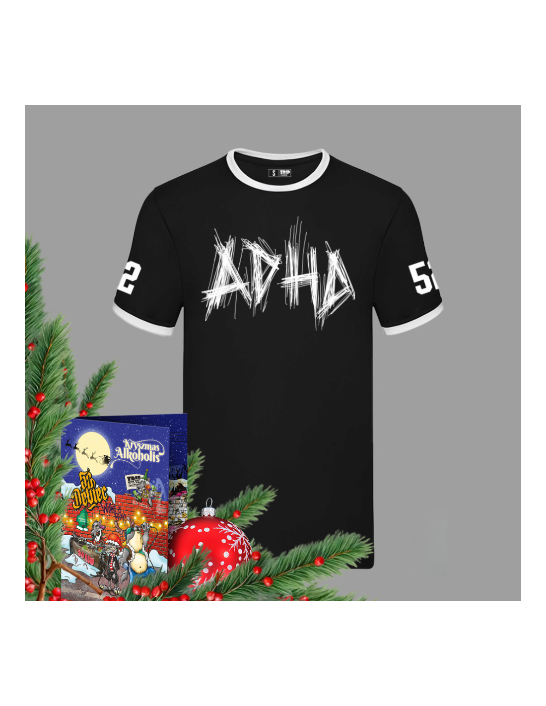 Biały nadruk (sitodruk) aż w 4 miejscach: