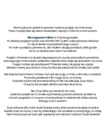 Starałem się by ten projekt był dopieszczony bardziej od poprzedniego, nawet nie wiecie ile uśmiechu mam widząc ile osób stoi za tą muzyką, po całym kraju ludzie w moim poprzednim merchu. Robię co mogę by zrobić to jak najlepiej.